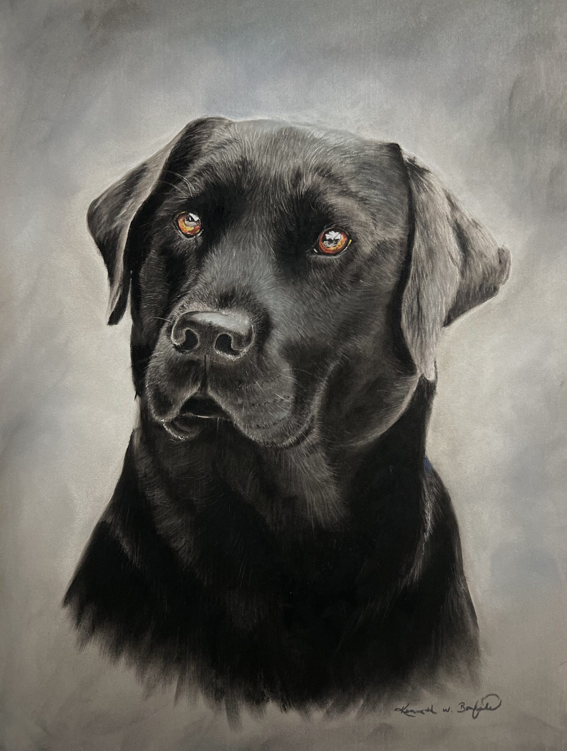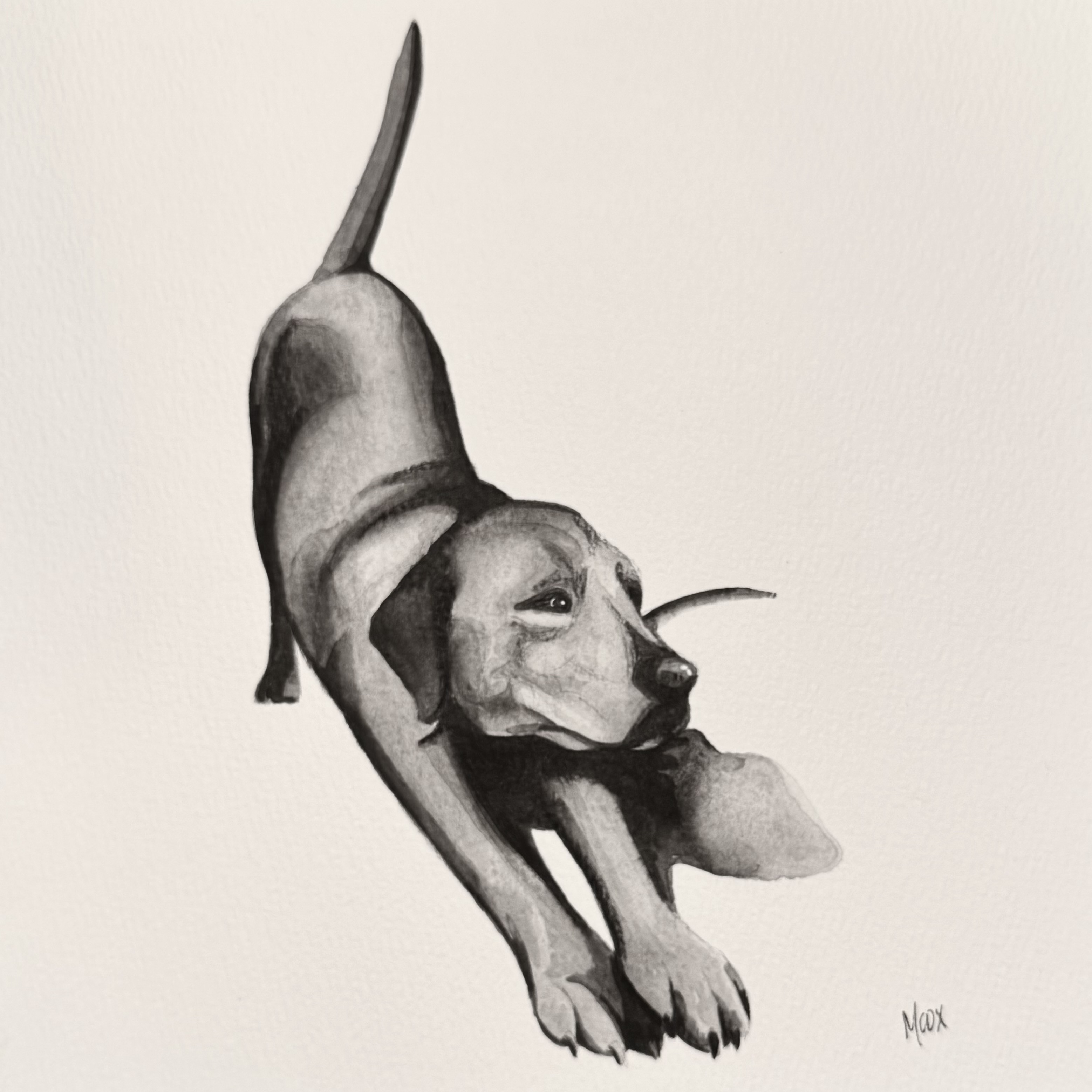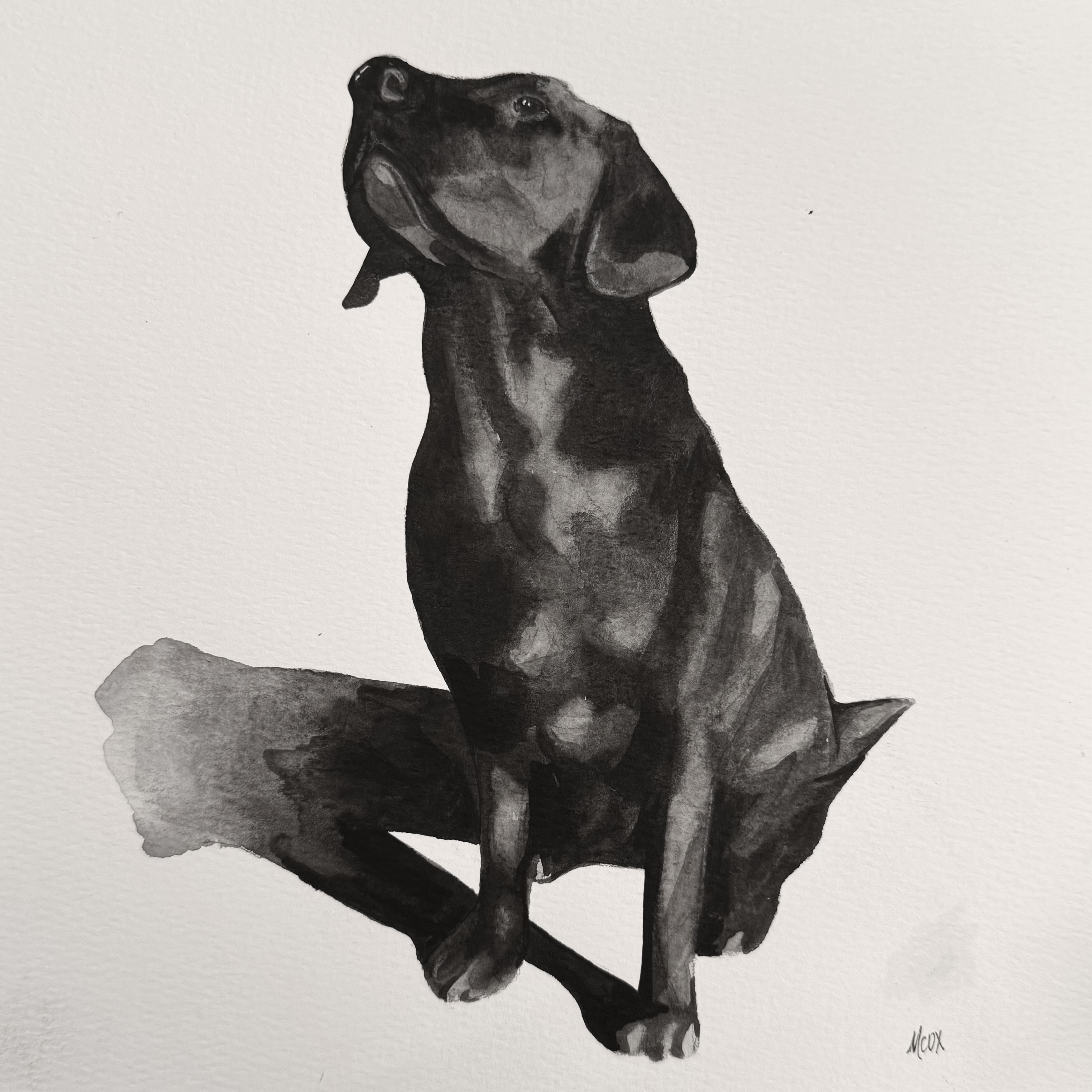 From a series of watercolor sketches of a black lab. These pieces are a part of a study I was doing of my own dog..