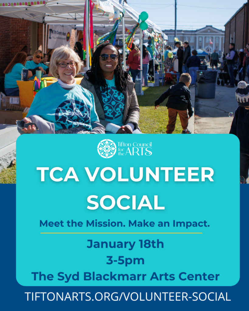 Celebrating the volunteers who make Tifton’s arts community shine! Enjoy refreshments, raffle prizes, and a chance to connect with fellow supporters.